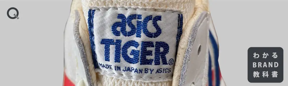 1977年創設当時のロゴ「ASICS」に「TIGER」の文字を加えて制作。
